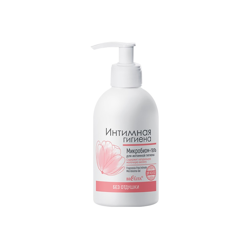 Микробиом - гель для интимной гигиены деликатно очищает интимные зоны, благодаря нежной формуле. Входящие в состав активные компоненты обладают превосходным увлажняющим и противовоспалительным действием, способствуют восстановлению и защите микрофлоры, а также успокаивают кожу, ухаживают за ней. Натуральная сбалансированная формула не содержит отдушки, способствует улучшению и восстановлению защитного барьера кожи, снижает ощущение дискомфорта, вызванные сухостью. Натуральная молочная кислота, входящая в состав геля, обеспечивает кислотность влагалищной среды, которая в свою очередь оказывает бактерицидное действие на патогенную флору. Подходит для ежедневного применения, во время критических дней и в период менопаузы.