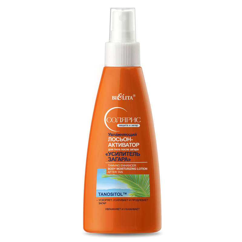 Увлажняющий лосьон-активатор для тела после загара «Усилитель загара» великолепно впитывается, придает ощущение комфорта и свежести, помогает надолго сохранить загар и сияние кожи.