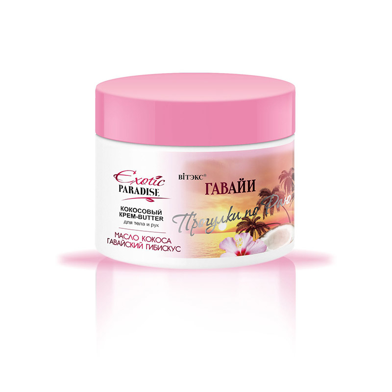 Кокосовый крем-butter для тела и рук с маслом кокоса и гавайским гибискусом – райское наслаждение для Вашей кожи.