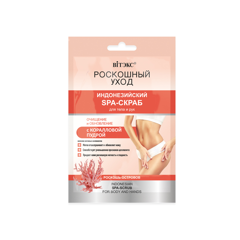 Королевский коралловый SPA-скраб с маслом монои, балийским цветком и драгоценной коралловой пудрой воздействует на кожу в лучших традициях SPA.