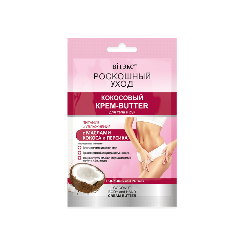 Кокосовый крем-butter для тела и рук с маслом кокоса и райский гибискусом – изысканное наслаждение для Вашей кожи.