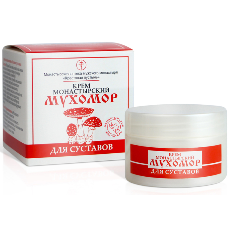 Крем «Монастырский мухомор» «Для суставов» создан на основе масляной вытяжки из мухомора и экстрактов лекарственных растений, которые, согласно рецептам народной медицины, применяют для снятия острой и хронической боли при радикулитах, артрозах, артритах и других аналогичных заболеваниях, оказывают местное обезболивающее и разогревающее воздействия, облегчают боль в суставах, увеличивают их подвижность, замедляют возрастные изменения, снижают реакцию суставов на колебания погоды, уменьшают воспаление и отечность, стимулируют кровообращение и обмен веществ.
