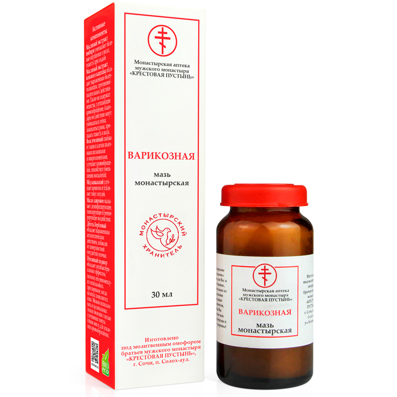 Природные компоненты, входящие в состав монастырской мази «Варикозная», издавна применялись при: варикозе, сосудистой сеточке, угрозе тромбообразования, капиллярной ломкости, слабости стенок сосудов.
