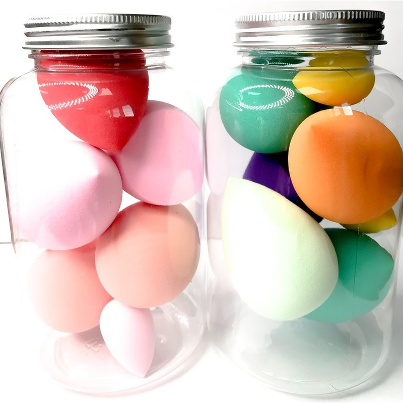 Спонжи для макияжа в банке упругие, гладкие, приятной цветовой гаммы, выполнены из высококачественного полиуретана.