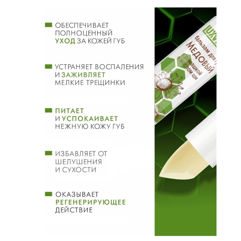 Ингредиенты бальзама обеспечивают питание и полноценный уход за кожей губ.
