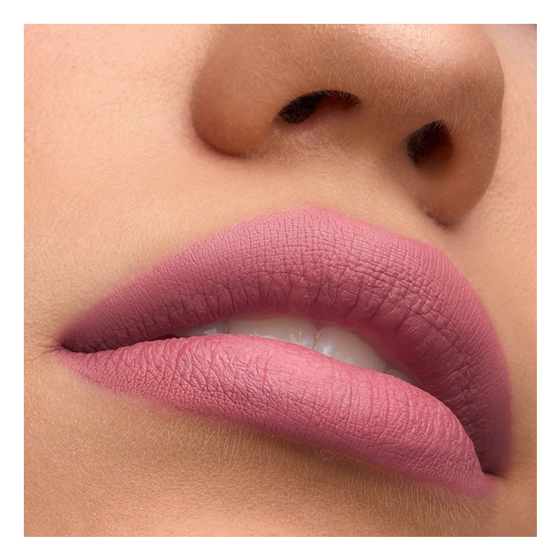 Жидкая флюидная текстура помады быстро высыхает после нанесения и создает невесомое покрытие с ультра матовым финишем.