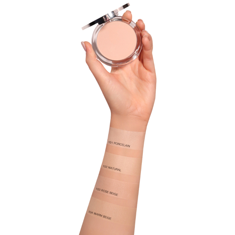 Ультраматовый финиш, контроль жирного блеска. Стильный футляр с зеркалом и спонжем