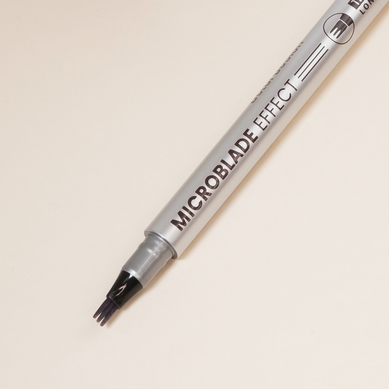Аппликатор в форме трезубца оставляет на коже тонкие штрихи, имитирующие волоски, воссоздавая салонный эффект микроблейдинга.