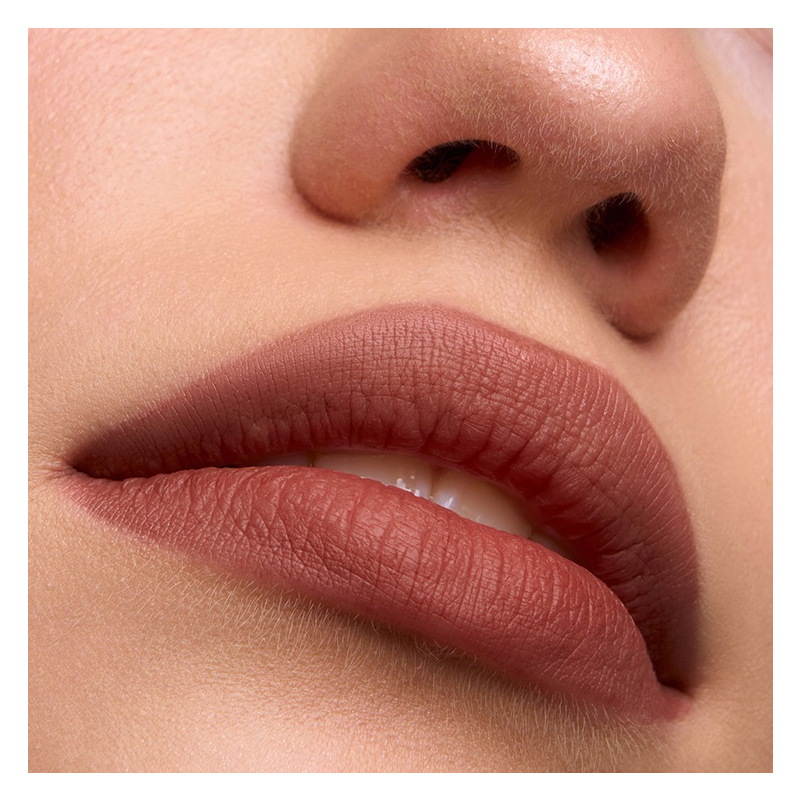 Жидкая флюидная текстура помады быстро высыхает после нанесения и создает невесомое покрытие с ультра матовым финишем.