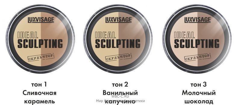 Двухцветная пудра-скульптор представлена в трех оттенках:тон 1 "Сливочная карамель"тон 2 "Ванильный капучино"тон 3 "Молочный шоколад"Каждый из них состоит из светлого и темного оттенка, которые легко смешивать между собой, добиваясь максимально естественных линий.