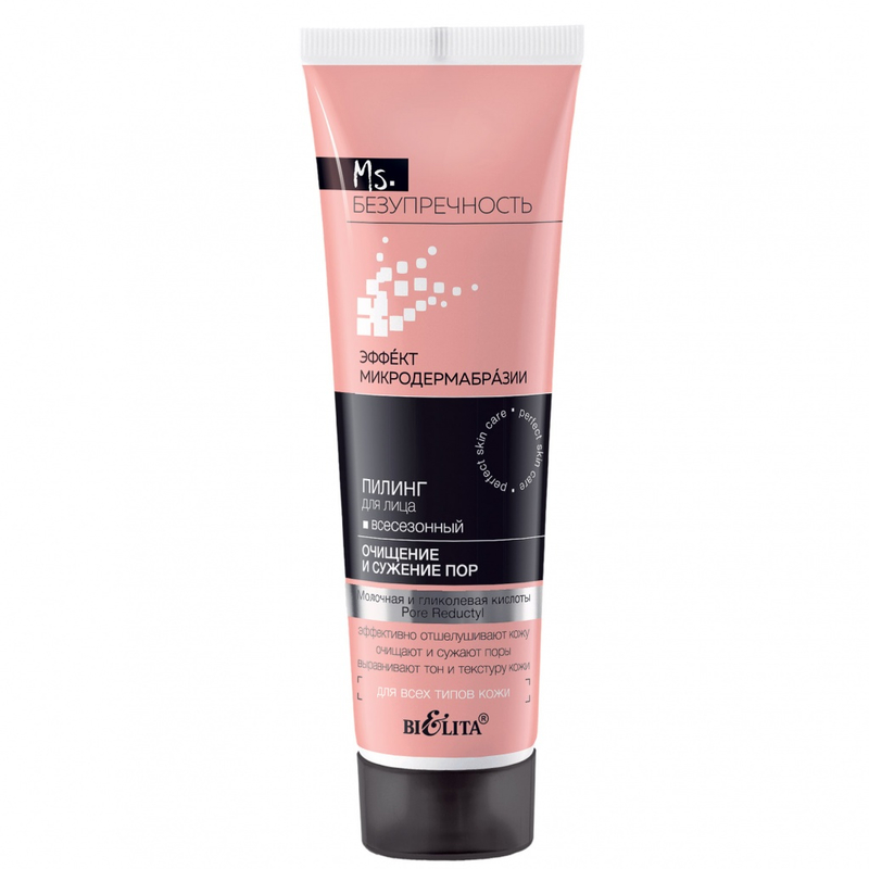 Пилинг для лица содержит молочную и гликолевую кислоты, благодаря которым оказывает щадящее эксфолирующее действие, удаляет омертвевшие клетки кожи, способствуя клеточному обновлению, эффективному очищению и суживанию пор, улучшению цвета лица.