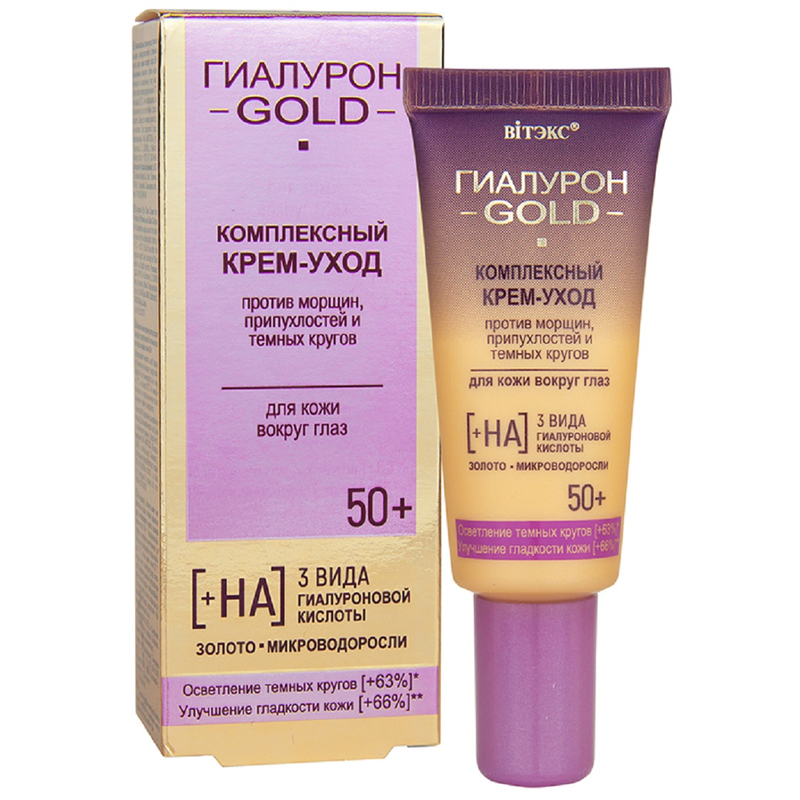 Комплексный крем-уход разработан с учетом особенностей и потребностей кожи в возрасте после 50 лет. Современная интеллектуальная формула, в составе которой 3 вида гиалуроновой кислоты, биозолото, микроводоросли, масло ши, сквалан и «умные» омолаживающие и осветляющие комплексы, прицельно воздействует на главные признаки старения кожи: «гусиные лапки», темные круги, припухлости, опущение верхнего века, преображая нежную кожу вокруг глаз каждый день.
