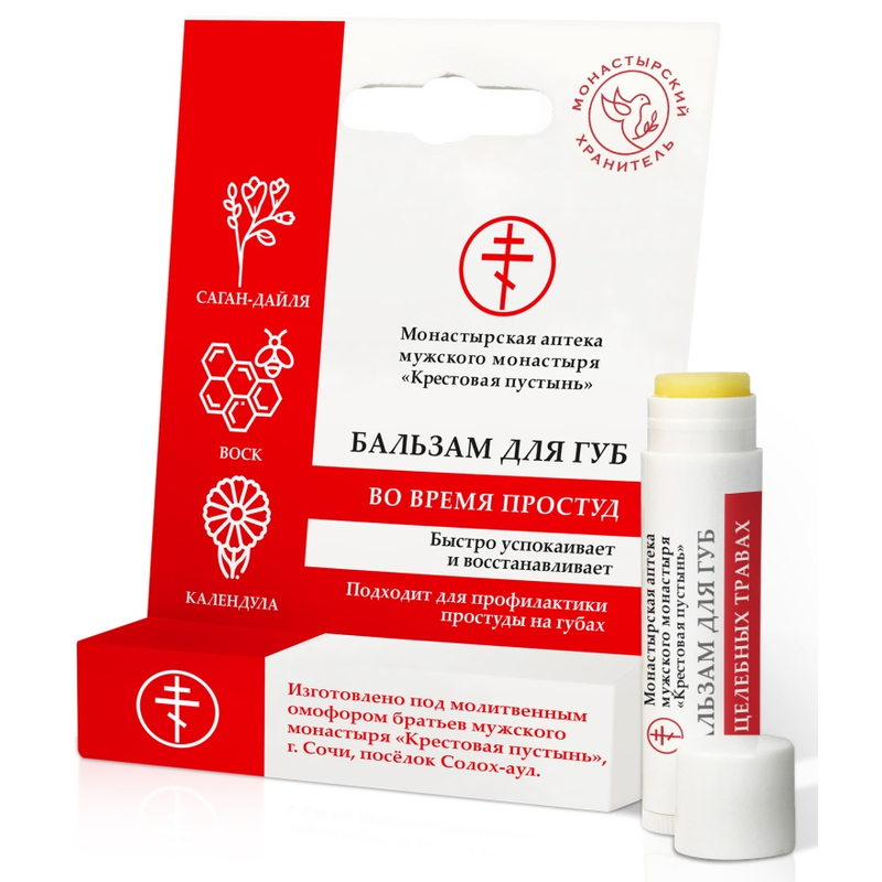 Герпес известен как вирусная инфекция, которая чаще всего даёт о себе знать в области нежной кожи губ. Что же необходимо сделать первым делом, чтобы предотвратить распространение простуды? В этом помогает народная медицина и мудрость знахарей, которые с давних пор прибегали к травничеству и природным средствам при первых проявлениях симптомов герпеса на губах. В составе монастырского бальзама для губ – саган-дайля, чабрец, цветки календулы, натуральные растительные масла, ценные своими противопростудными и иммуностимулирующими свойствами. Так, саган-дайля считается лучшим обеззараживающим и противовирусным растением. Его комплекс с чистотелом может помочь быстрее снижать активность герпеса. Считается, что масло лавра в короткие сроки блокирует вирус и останавливает его размножение, а также ценно для профилактики рецидивов при частых высыпаниях. Вот почему бальзам может быть полезен не только в сезон простуд, но и в качестве природной защиты на каждый день.