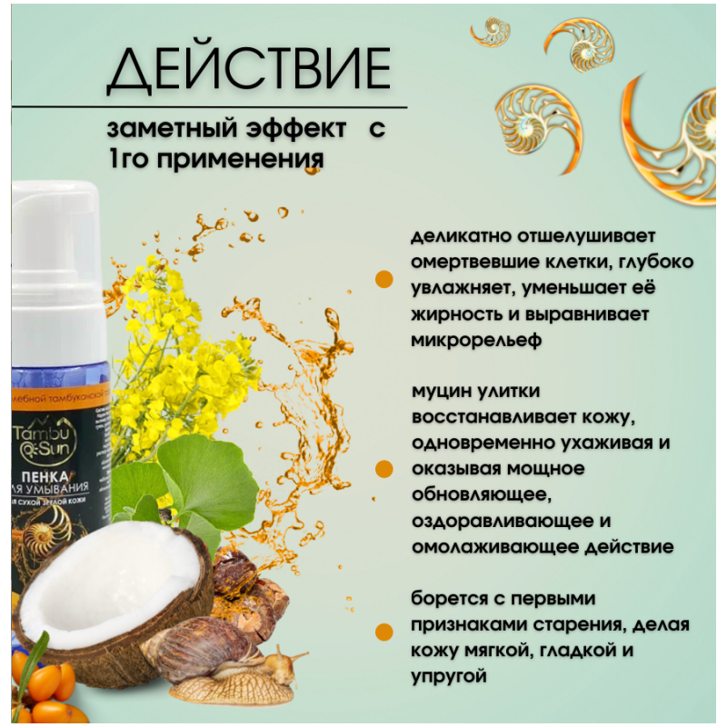Пенка для умывания с муцином улитки для сухой зрелой кожи нежно и бережно очищает, деликатно отшелушивает омертвевшие клетки, глубоко увлажняет, уменьшает жирность и выравнивает микрорельеф, а также борется с первыми признаками старения, делая кожу мягкой, гладкой и упругой. Основной компонент пенки – муцин улитки. Это природное вещество является уникальным компонентом для ухода за кожей.