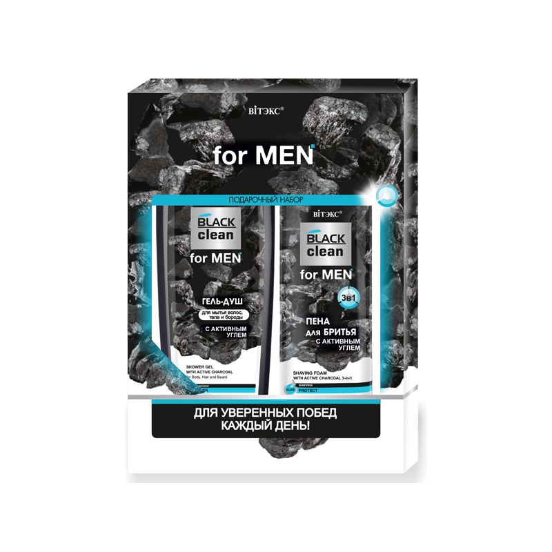 ГЕЛЬ-ДУШ с активным углем для мытья волос, тела и бороды + ПЕНА ДЛЯ БРИТЬЯ 3-в-1 с активным углем