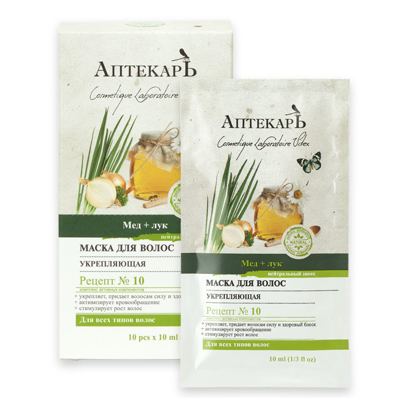 вода, цетеариловый спирт, хлорид цетримония, кватерниум-87, глицерилстеарат, фенилтриметикон, хлорид бегентримония, метокси ПЭГ/ППГ-7/3 аминопропилдиметикон, диметикон, мёд, цетеарет-25, экстракт луковой шелухи, парфюмерная композиция, ЭДТА динатрия, метилпарабен, бензиловый спирт, метилхлоризотиазолинон, метилизотиазолинон, пропилпарабен, лимонная кислота, линалол.