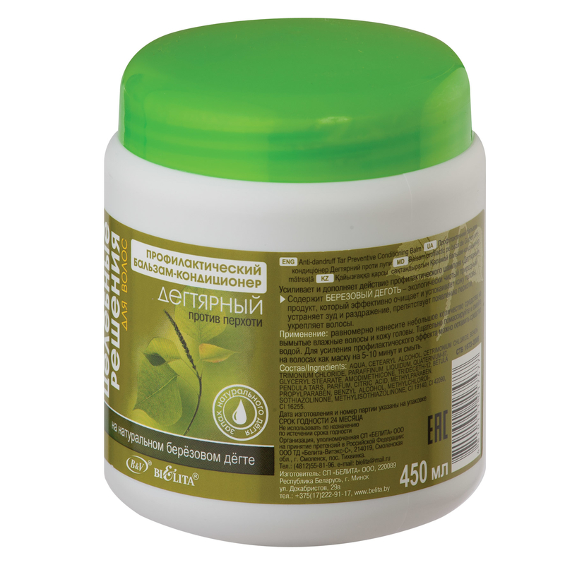 Профилактический БАЛЬЗАМ-КОНДИЦИОНЕР против перхоти Дегтярный — Ваш идеальный натуральный помощник в борьбе с перхотью и сухостью кожи головы. Содержит берёзовый дёготь, поэтому имеет запах натурального дёгтя.