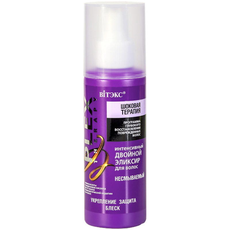Несмываемый двойной эликсир – экспресс средство для укрепления и мгновенного придания волосам дополнительного блеска, обеспечивает надежную защиту от термических и механических повреждений, облегчает расчесывание.