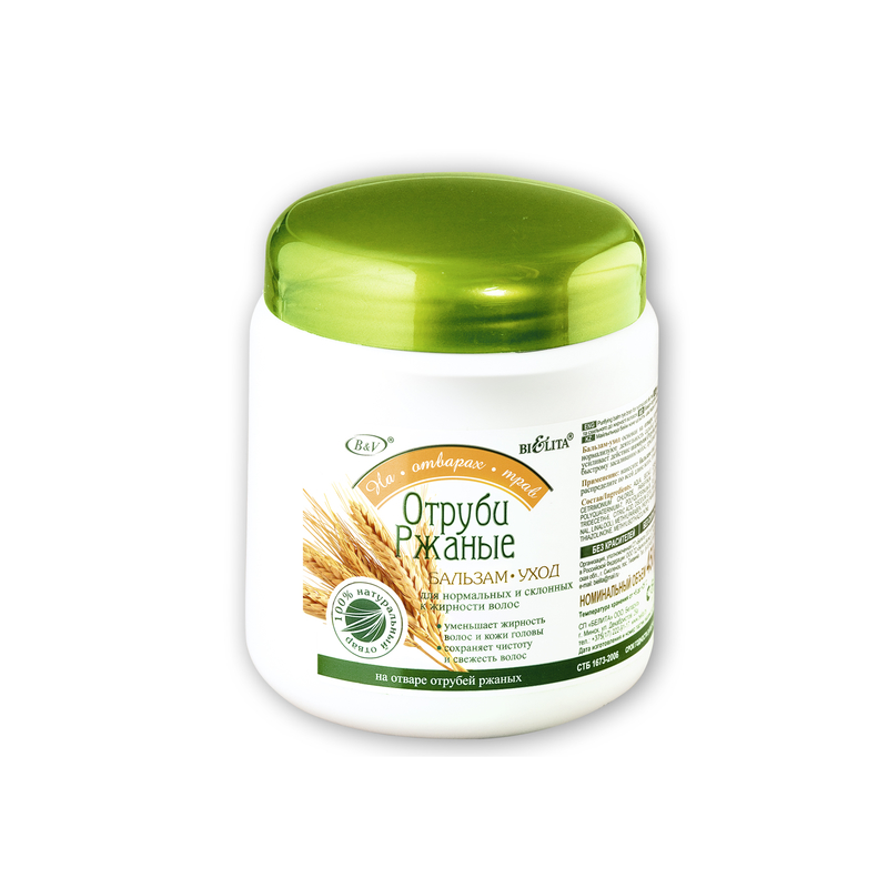 -уход содержит отвар ржаных отрубей, который эффективно нормализует деятельность сальных желез, уменьшая жирность волос и кожи головы.