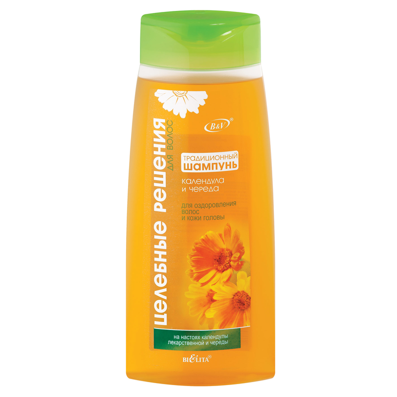 Традиционный ШАМПУНЬ для оздоровления волос и кожи головы Календула и череда основан на растительных настоях череды и календулы, которые оздоравливают волосы и делают их более сильными и красивыми. Шампунь отлично промывает волосы в воде любой жесткости, придает волосам лёгкость и пышность.