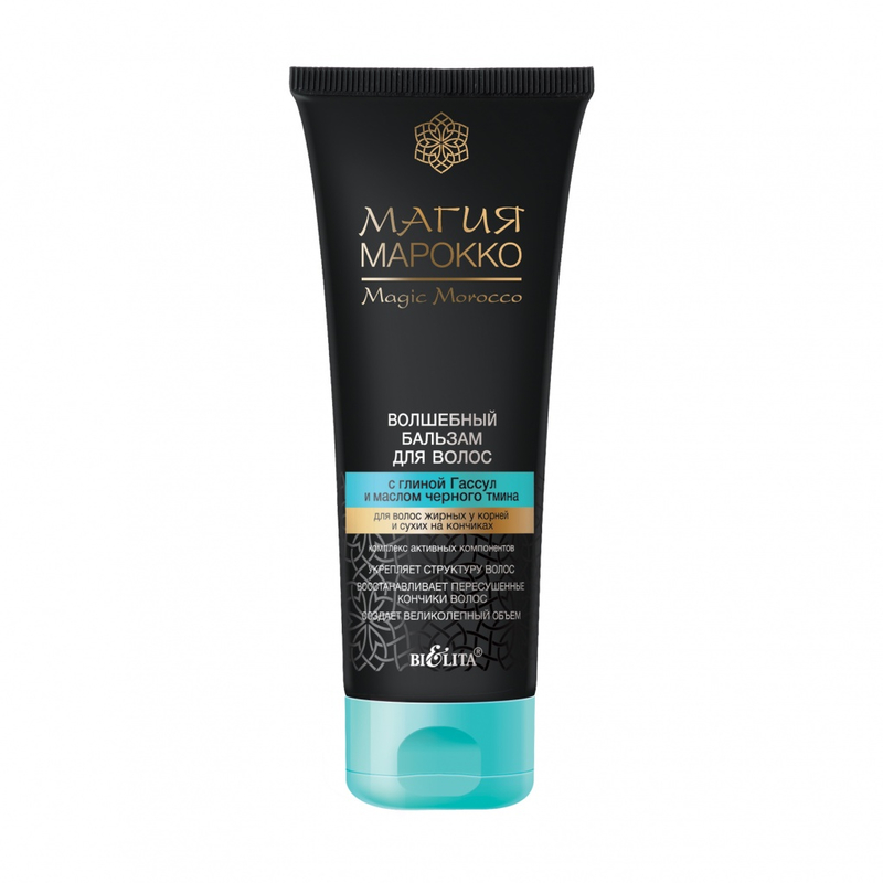 Комплекс активных компонентов (марокканская глина Гассул вулканического происхождения, масло черного тмина, экстракт моринги, антиоксидантный комплекс BioDTox, Sebaryl) волшебным образом действует на кожу головы и волосы: