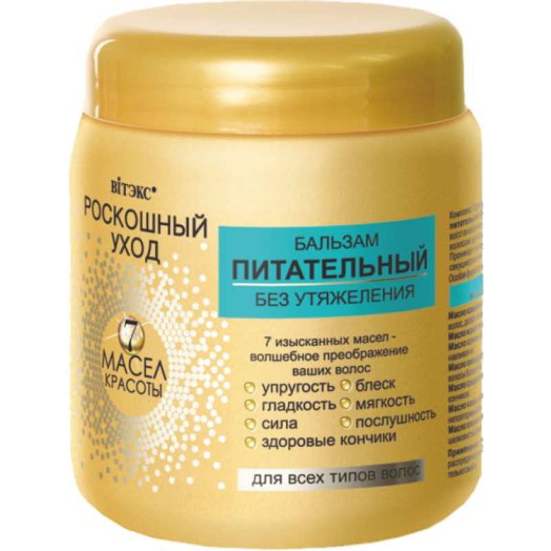 Для всех типов волос БЕЗ УТЯЖЕЛЕНИЯ Обеспечивает глубокое питание и восстановление волос от корней до самых кончиков.