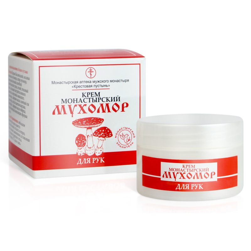 Крем «Монастырский мухомор» «Для рук» создан на основе масляной вытяжки из мухомора, которую активно применяют в народной медицине. Активные компоненты, входящие в состав, могут способствовать питанию клеток кожи, восстановлению её эластичности и упругости, устранять сухость, растрескивание, восстанавливать структуру кожных покровов, сохранять бархатистость, гладкость и естественный цвет кожи. Состав компонентов позволяет ухаживать за руками комплексно в любом возрасте.