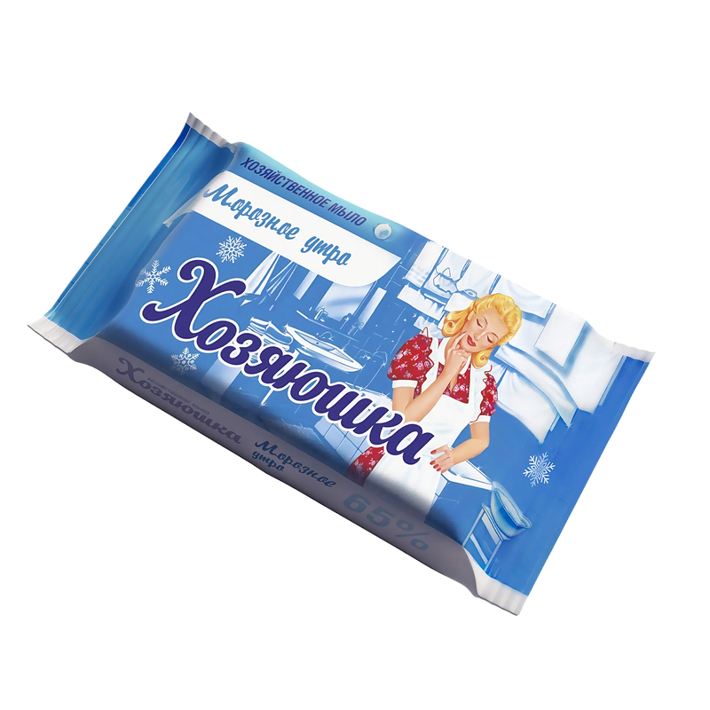 Мыло Хозяюшка с энзимами для стирки и удаления пятен предназначено для замачивания и стирки белья, чистки мебели и ковровых покрытий, а также для мытья полов и сантехники. Аромат мыла навевает нотки солнечного морозного утра.